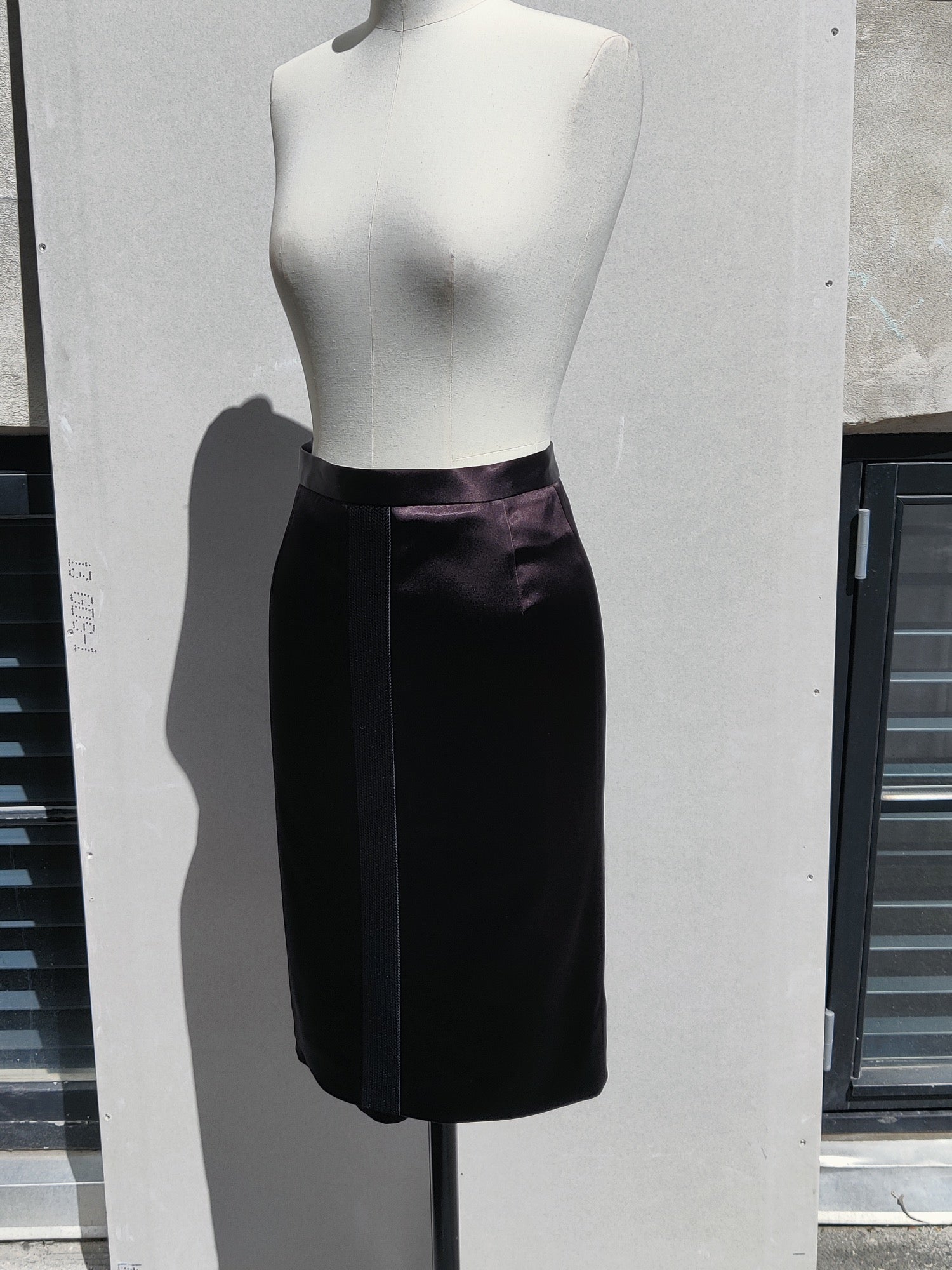 ANNOUK is our black multi-purpose pencil skirt that will accompany you to work, on formal occasions and at dinner parties. It’s an ideal item for busy women who is always on the go whether you are in heels, boots, or sneakers. ANNOUK is cut from a stretch satin and lined with a visible dropped silk stretch fabric, which makes it pleasant and easy to wear. ANNOUK has a mesh detail on both the center front and center back, and also a classic split in the center back. You can wear it with a shirt, our ASRA bodystocking or a t-shirt depending on the occasion. This pencil skirt has the potential to become the foundation of your wardrobe.